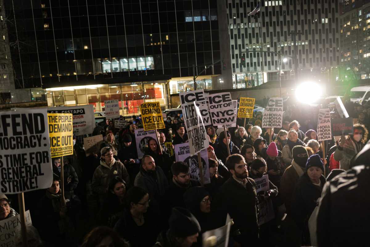 In the hours since the Minneapolis shooting, Hands Off NYC held what it called an “emergency protest” against ICE in Foley Square. One of the participants, Murad Awawdeh, president and CEO of the New York Immigrant Coalition, called ICE “a rogue, lawless agency that continues to sow panic, chaos, and fear” across the country, and called for its abolition.