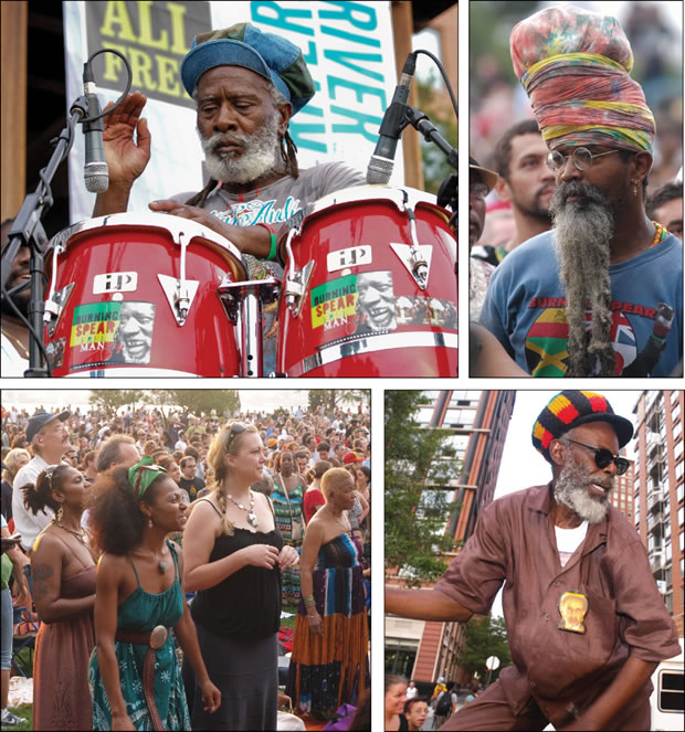 Last Wednesday evening, one of the largest crowds ever turned out to see one of the most enigmatic and prolific roots artists in Jamaica’s history, Burning Spear (a.k.a. Winston Rodney) perform at Rockefeller Park. The concert was presented as part of this year’s River to River Festival.