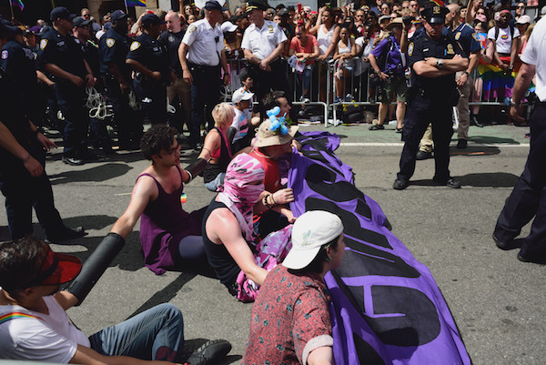 BY DUNCAN OSBORNE | A dozen queer activists were arrested during New York City’s Pride March as they protested the presence of police and corporate sponsors in the annual commemoration of the 1969 Stonewall riots that marked the modern L.G.B.T.Q. rights movement’s start.