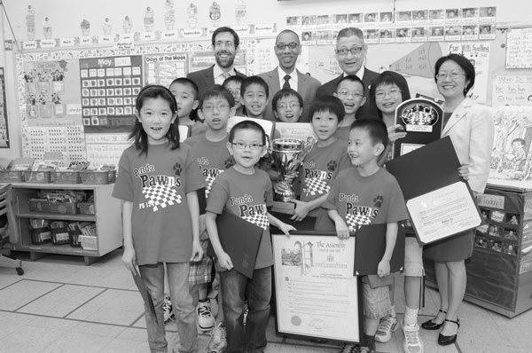 New York State Senator Daniel Squadron, NYC Schools Chancellor Dennis Walcott, Assembly Speaker Sheldon Silver and NYC Council member Margaret Chin visited the Panda Pawns, the city and state elementary school chess champions from P.S. 124, on Tuesday, May 31, to commemorate the team’s accomplishments.