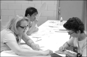 On this blazing hot, 88-degree day, with an enormous silver tent sheltering, but marginally cooling, the schoolyard, the volunteers signed in and were given green ACTOR tags and cold beverages and snacks, while they waited.