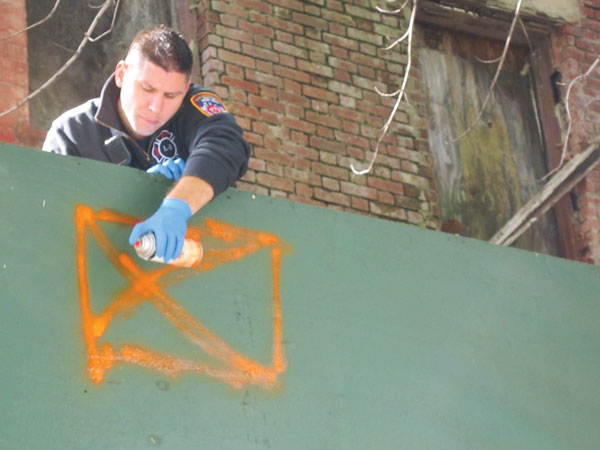 In The New York Times, Sam Roberts writes that 502 Canal St., at the southwest corner of Greenwich St., is in even worse shape after Superstorm Sandy and that a “Do Not Enter” sign has now been slapped on it. Just a couple of weeks before the storm slammed town, a firefighter was seen spray-painting orange “X”’s all over the place’s exterior. According to a Fire Department spokesperson, the symbols mean “severe hazards,” that no one is living there and that no one should enter. Dennis Healy, who runs the bicycle stoop sale next door, told us the corner building, which is owned by the Ponte family, has been in bad shape for a very long time.