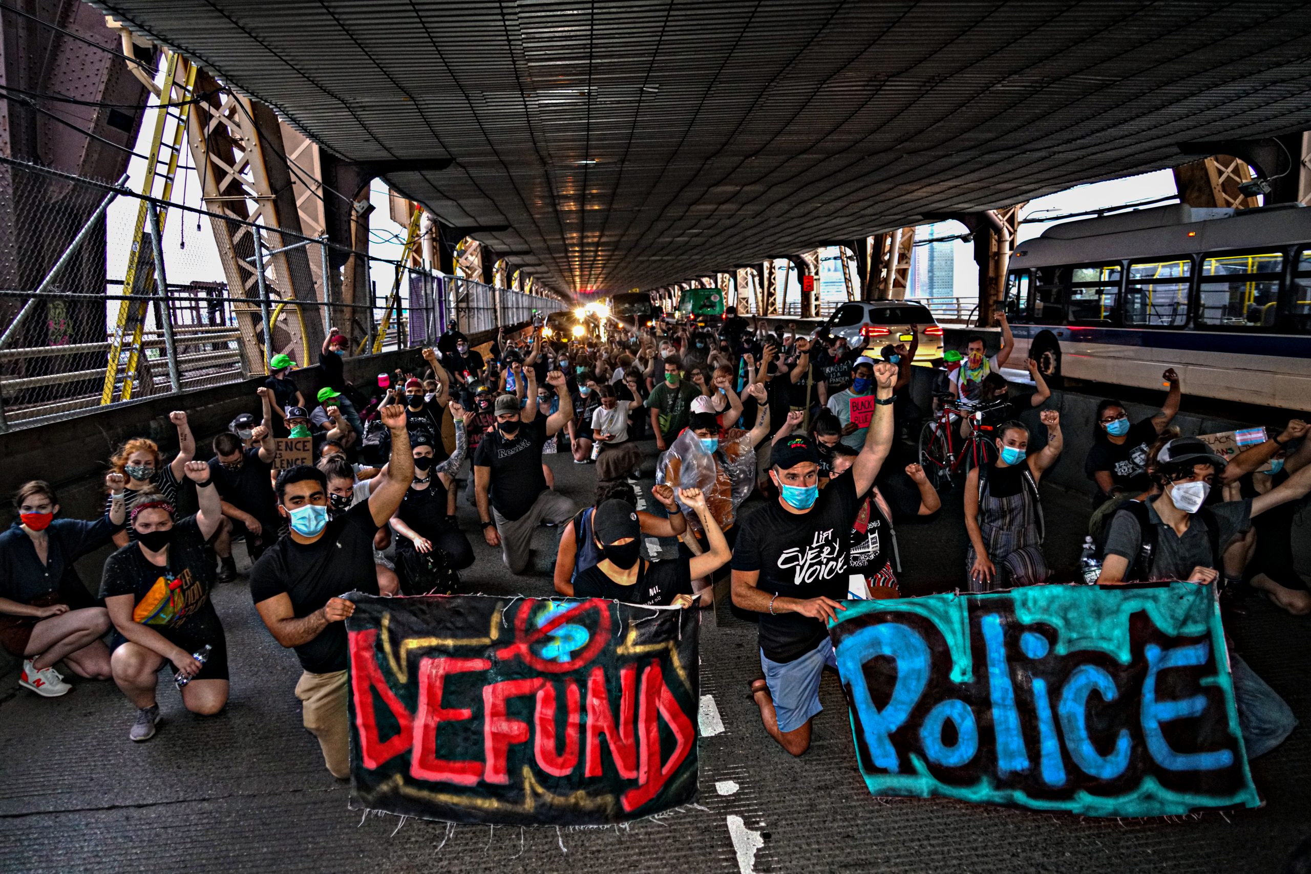 The mostly young demonstrators held signs and shouted Black Lives Matter slogans as diners in Little Italy waved and cheered.