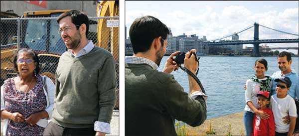 State Senator Daniel Squadron, along with Bill Castro, the Parks Department’s Manhattan borough commissioner, led the first public tour of the Lower East Side’s Pier 42 on Sunday, and announced plans for its interim use while the planning process for the pier’s redevelopment as a waterfront park gets underway. Last November, Squadron and U.S. Senator Chuck Schumer secured $16 million for the redevelopment of Pier 42 and the completion of the East River waterfront park, which will help complete the “green ribbon” around Manhattan. On Sunday, Squadron and Castro announced that a Waterfront Community Day will be held on Pier 42, at South and Montgomery Sts., on Sat., Nov. 3, from 12 p.m. to 4 p.m., sponsored by the Hester Street Collaborative, the Lower Manhattan Cultural Council, the Lower East Side Waterfront Alliance, Squadron and Parks. The event will be the first time the pier is open for public use. Community Board 3’s next public planning meeting for Pier 42 will be held Thurs., Oct. 4, at 6:30 p.m. at Hamilton Fish Recreation Center, 128 Pitt St., between Houston and Stanton Sts. Clockwise from top left: Castro and Squadron out on the pier talking with constituents; Squadron, journalist Ed Litvak and others tour the old pier shed’s interior; Squadron snapping a shot of constituents out on the waterfront; the senator, along with Aixa Torres, Smith Houses Residents Association president, led the group outside to the waterfront after touring the pier shed’s interior.