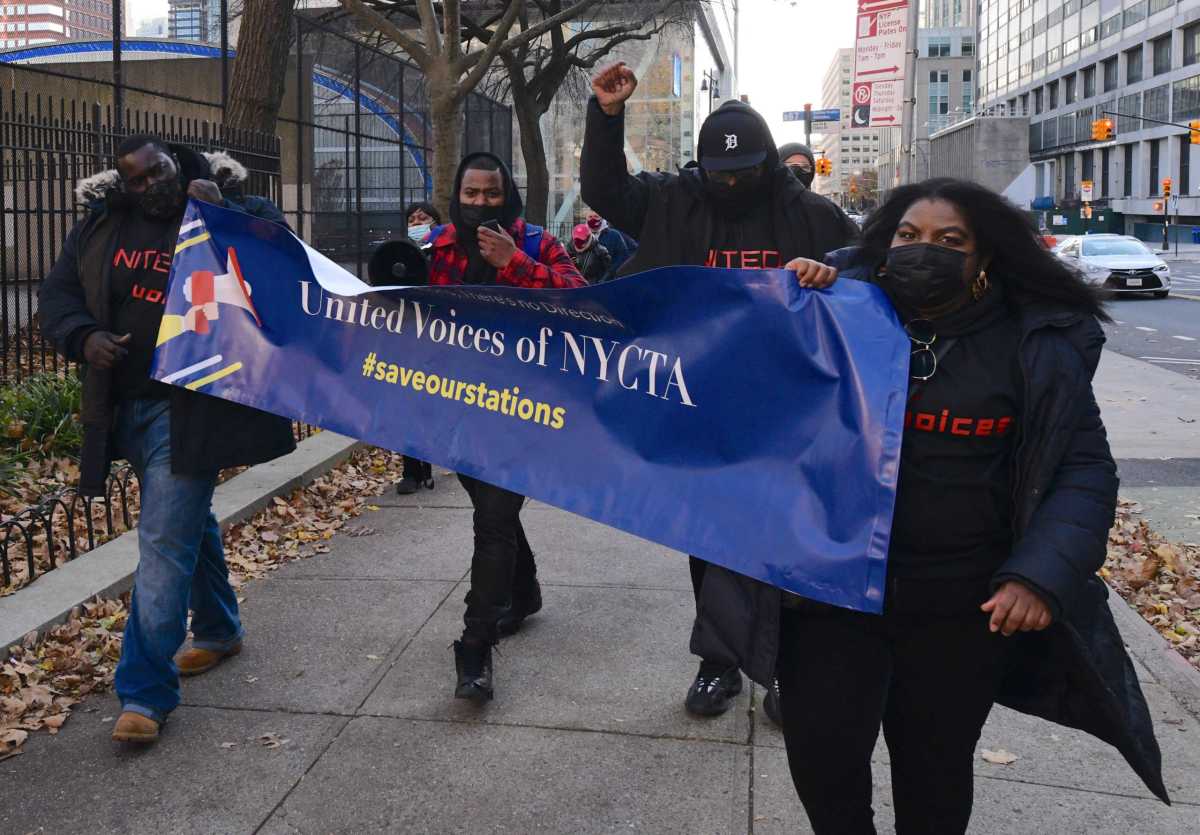 A group of MTA station agents marched on Jay Street from union headquarters Wednesday, demanding that the railroad and its union support their jobs and maintain station clerks.