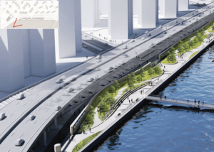 Since 2020, the Department of Design and Construction (DDC) and the Economic Development Corporation (EDC) have been developing a 2.4-mile-long East Side Coastal Resiliency wall from Montgomery Street up to East 25th Street in order to protect nearby residents and buildings from devastating storm damage, a project that was spurred on by Superstorm Sandy and the damage it wrought in 2012.