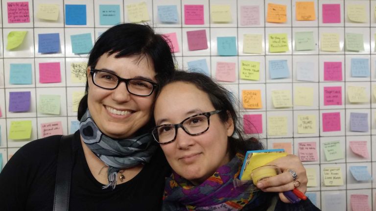 The walls are littered with brightly colored messages of support for Muslims, women, immigrants, people of color and others who might feel threatened by the policy proposals of president-elect Donald Trump. There are messages of support for Hillary Clinton, who fell short of her bid to be the first woman elected president.