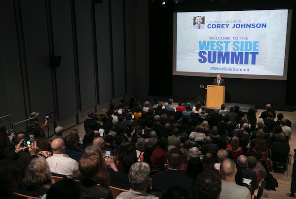 BY LINCOLN ANDERSON | Corey Johnson announced the winners of his district’s Participatory Budgeting voting at a “West Side Summit” at the Whitney Museum of American Art (99 Gansevoort St., btw. 10th Ave. & Washington St.) on the night of Tues., May 9. But it was the councilmember’s fiery comments about fighting Donald Trump that won the evening’s strongest applause.