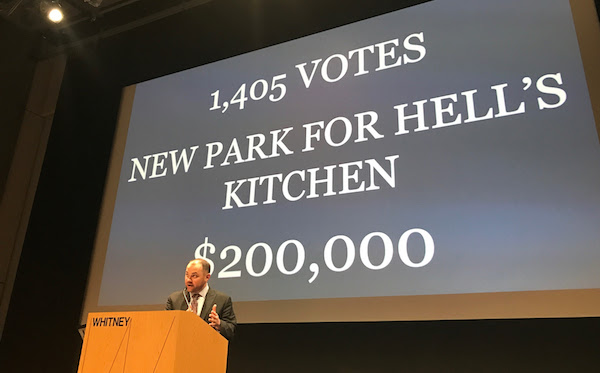 The top vote-getter was $200,000 for a park in Hell’s Kitchen, on a vacant site at 10th Ave. (btw. W. 48th & 49th Sts.) that was used for construction of the Third City Water Tunnel. The city also plans to build affordable housing on part of the site. The community will be involved in planning and designing the park, Johnson said.