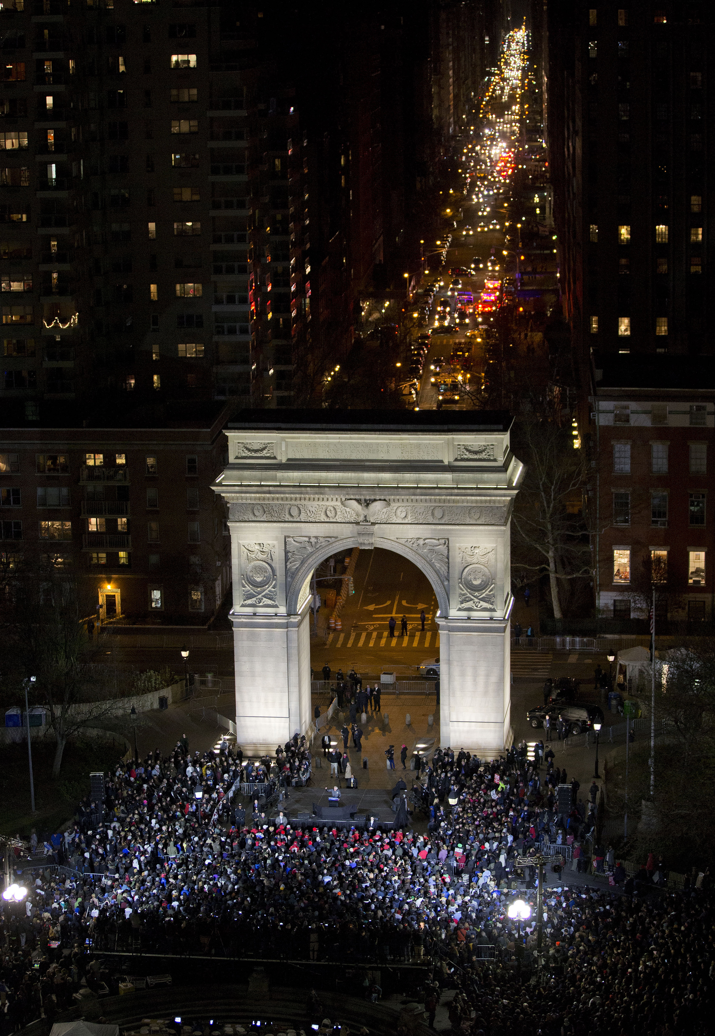 BY SARAH FERGUSON | Bernie Sanders swamped Washington Square Park on Wednesday night with a massive crowd that overflowed into the tightly corralled side streets in Greenwich Village. The Sanders camp said 27,000 attended, based on the capacity of the park and the number of RSVPs it got from Sanders fans online. But other news outlets put the count closer to 30,000 — more than then-Senator Barack Obama drew to Washington Square when he was campaigning for the presidency back in 2008.