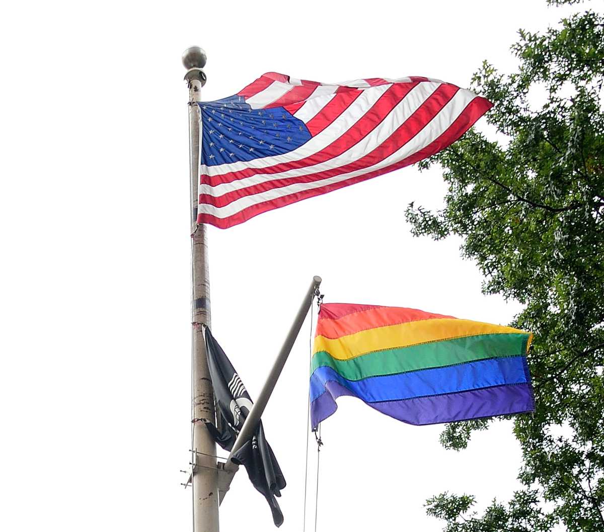 The rainbow flag has been up since September 28. But now it is owned by the city, and the Parks Department has indicated it would like to see a larger rainbow flag up on the flagpole.