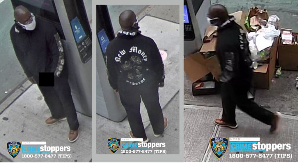 Days later at 4:50 p.m. on Oct. 25, a 55-year-old woman was walking in the vicinity of 6th Avenue and West 16th Street when the suspect approached her with his genitals exposed. The suspect grabbed the suspect’s buttocks and fled the scene on foot southbound on 6th Avenue.