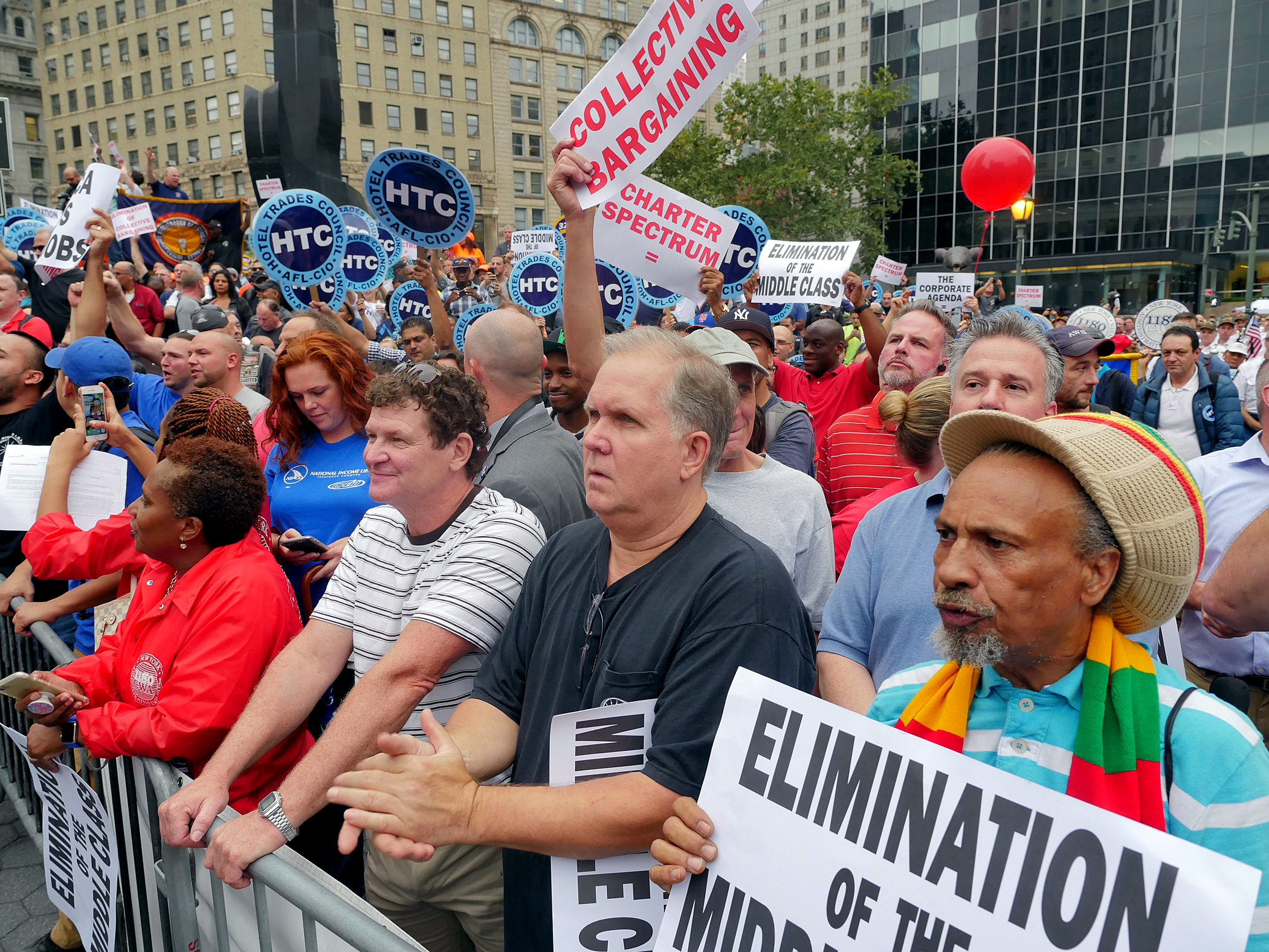Workers from a vairety of unions turned out to Foley Square in support of the International Brotherhood of Electrical workers on Sept. 18.