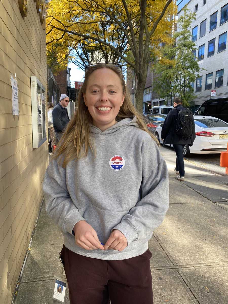 Alexandra Dauler, who voted at PS 154, said she voted for Mamdani, although she aligns politically more with Cuomo. She said she voted for Mamdani “to annoy Trump.”Photo by Shea Vance