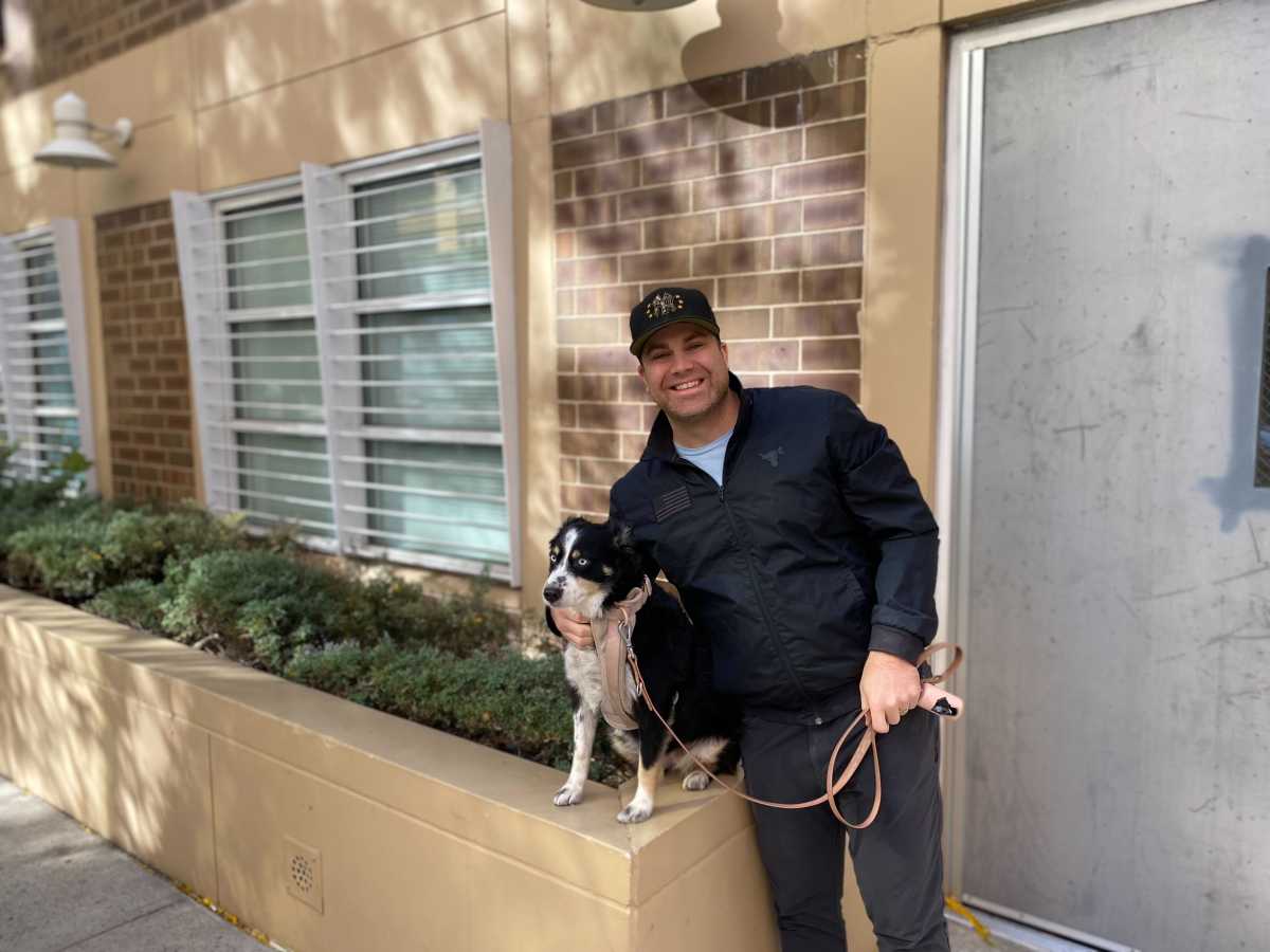 Todd Young, 39, who arrived with his dog, Stevie Nicks, voted for Cuomo. “I think he did a decent job as governor, and the city’s not in a terrible place,” he said. “I don’t want to flip things upside down with Mamdani.”Photo by Adam Daly