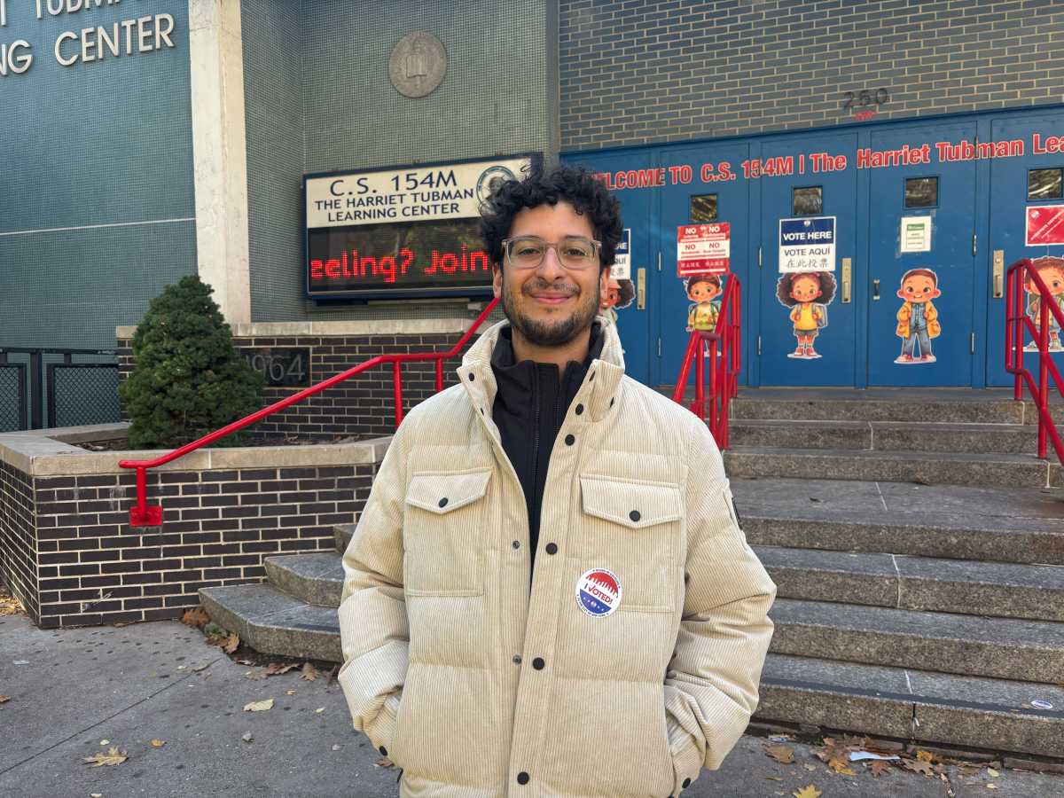 Raul Perez-Hinojosa, voting in Harlem, said he cast his ballot for Mamdani. Perez-Hinojosa said he has been following Mamdani since his campaign for Assembly, and he is excited about the democratic socialist’s affordability agenda—and that the two are graduates of the same middle school.Photo by Shea Vance