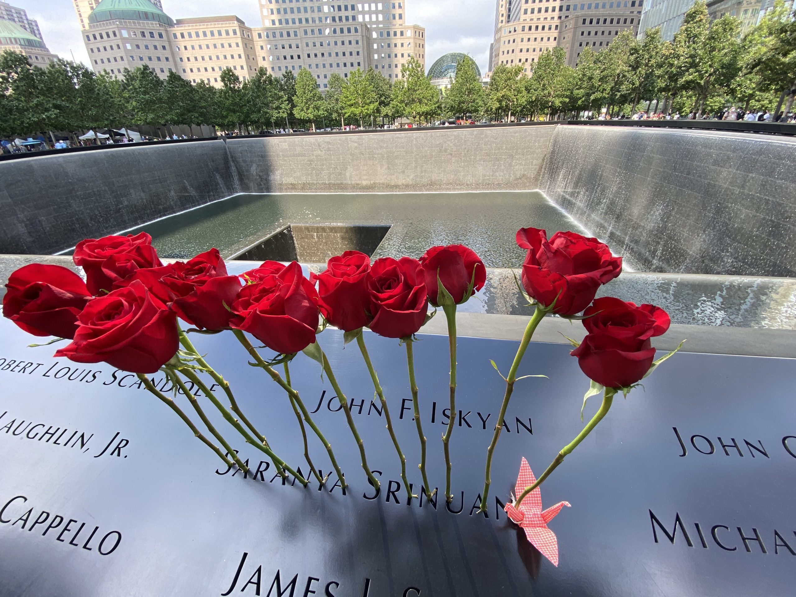 Families placed flowers, photos, and other knickknacks on the etched names of their loved ones on the walls of the 9/11 Memorial North and South Pools as they have in the past — some renewed their vows to make sure the lost were not forgotten. The pools represent the location of the former Twin Towers.