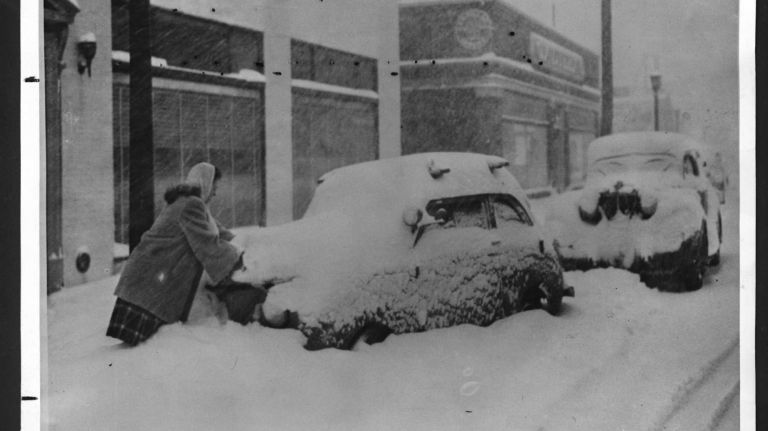 Central Park recorded 26.4 inches of snow during the blizzard of 1947, which began early in the morning on Dec. 26. Since the storm had not been forecast, New Yorkers woke up to a city blanketed by snow. According to Time Magazine, “long after nightfall, the illuminated news sign of The New York Times flashed an announcement to little groups of people huddled in Times Square that the snowfall, which totaled an amazing 25.8 inches in less than 24 hours, had beaten the record of the city’s historic blizzard of 1880. A faint, muffled shout of triumph went up from the victims.”