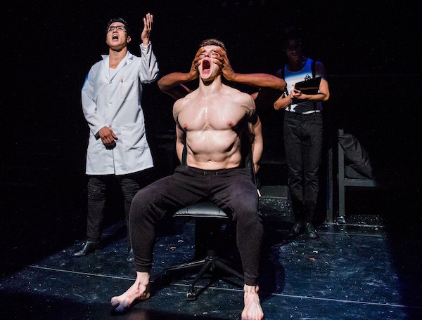 The company, though uniformly handsome with skilled physicality, unfortunately offers little in the way of acting. There is a lot of hollering. Jonno Davies as Alex, whom this production is “introducing,” is not well-served by the director who keep his performance presentational. One needs to have some level of empathy for Alex to give the piece any emotional impact, but it’s not there.