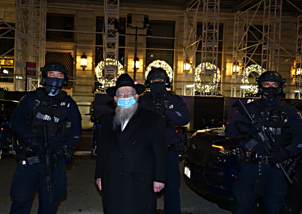 “The menorah stands as a symbol of light, as a symbol of democracy, of freedom for all human beings. But it has an added dimension this year, that’s why there are so many lights around the menorah,” Rabbi Shmuel Butman told amNewYork Metro. “It’s to light up the world from the darkness of the situation of which we are in and to remember all of the people that we lost. This is to cheer up everyone and to deliver a message: although the past was not the best, the future will be very good.”