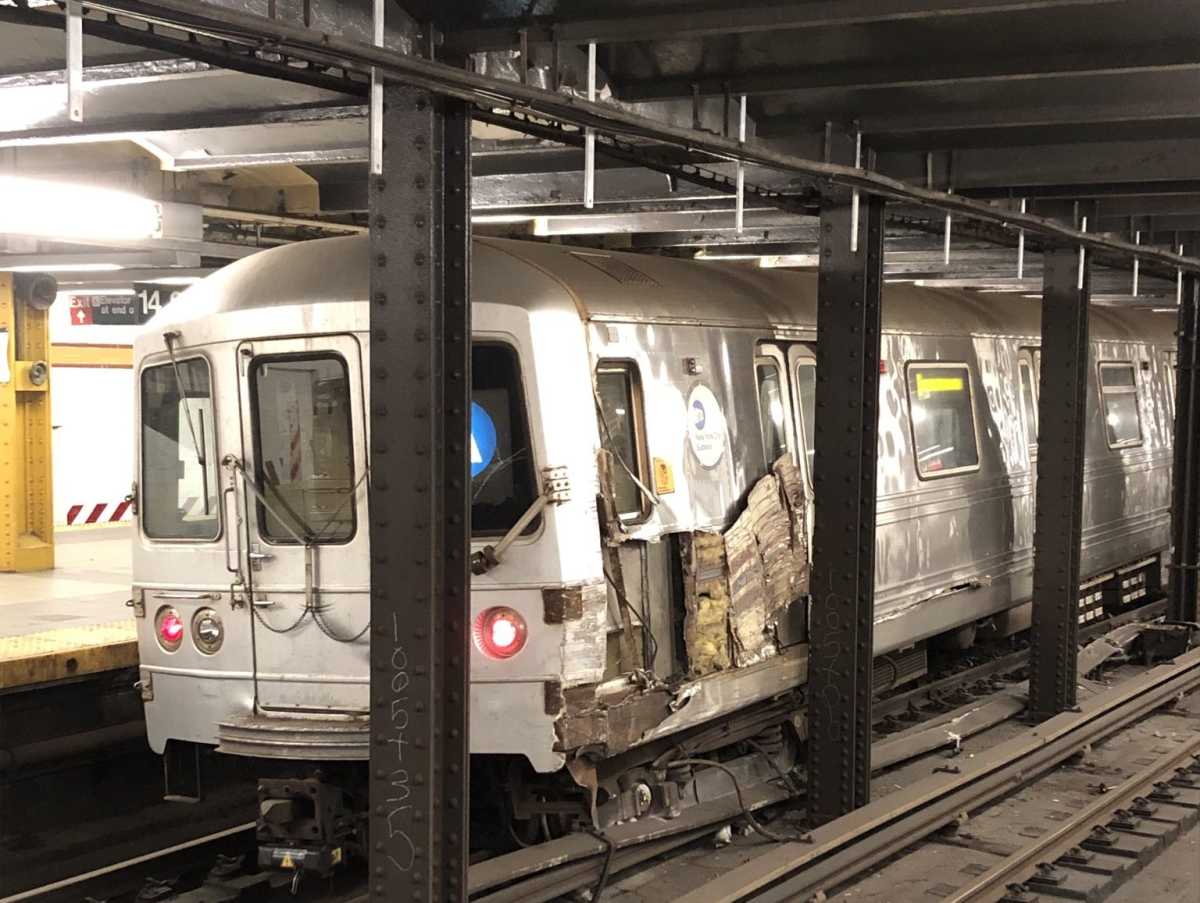line local track from Canal St to 59th St-Columbus Circle and will bypass 14 St in both directions. At this time, it is unclear whether express service will be available for the Monday morning rush,” Feinberg said. “I want to thank the NYC Transit workforce for their incredible dedication, ongoing hard work and perseverance during this incident, and our customers for their patience.”Transport Workers Union Local 100 President Tony Utano said the derailment, which saw the MTA flex its manpower with over 100 workers on scene, stood as proof that the struggling agency cannot afford to reduce staff in the face of the financial impacts from COVID-19.