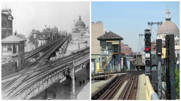When the Williamsburg Bridge was built and the line was extended across it in 1908, only a shuttle train connected Marcy Avenue and the Broadway Ferry station. The shuttle closed in 1916, and in 1942, the stations and tracks past Marcy Avenue were demolished. You can still see some evidence of the track though. Looking toward the river, to the left of the curve toward the bridge, above Broadway and just past Havemeyer Street, some of the original structure remains. The structure is lighter in weight than modern structures, Cunningham said.