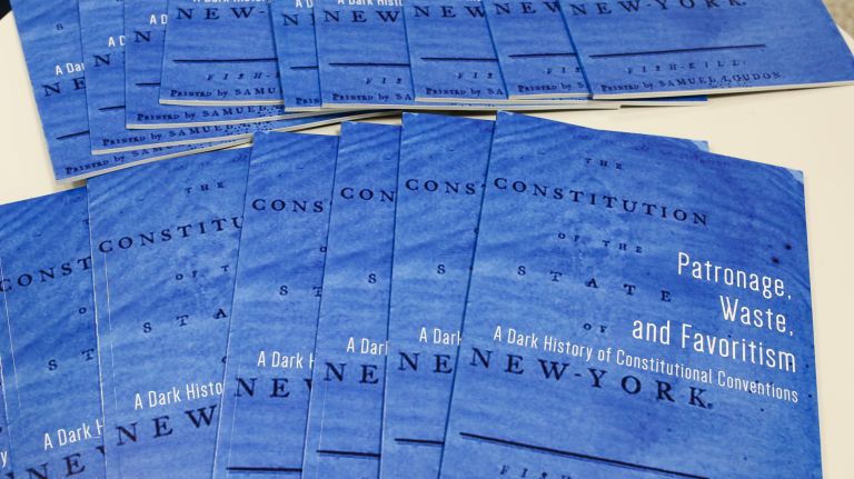 REALITY: This is absurd. Voters will elect 204 delegates — three from each of the Senate’s 63 districts plus 15 statewide. The GOP holds 31 Senate seats (the party maintains control with help from one Democrat who caucuses with them plus a group of breakaway Democrats). Some Democratic districts are heavily Democratic and could elect three Democratic delegates. Some Republican districts lean only slightly that way and Democrats could pick up one or even two delegates in those districts. Many minor parties across the political spectrum likely will field their own candidates, and true independents can run if they get the required number of signatures on their petitions. Campaigns are likely to be spirited, and mere citizens not bound by major party dictates could run and win. All of which means that in a state in which registered Democrats outnumber Republicans by more than 2 to 1, GOP control of a constitutional convention is unlikely.” data-id=”114455052″ data-link=”https://www.amny.com/wp-content/uploads/2019/10/12422_image.jpg” class=”wp-image-1.14455052″/>Photo Credit: Barry Sloan