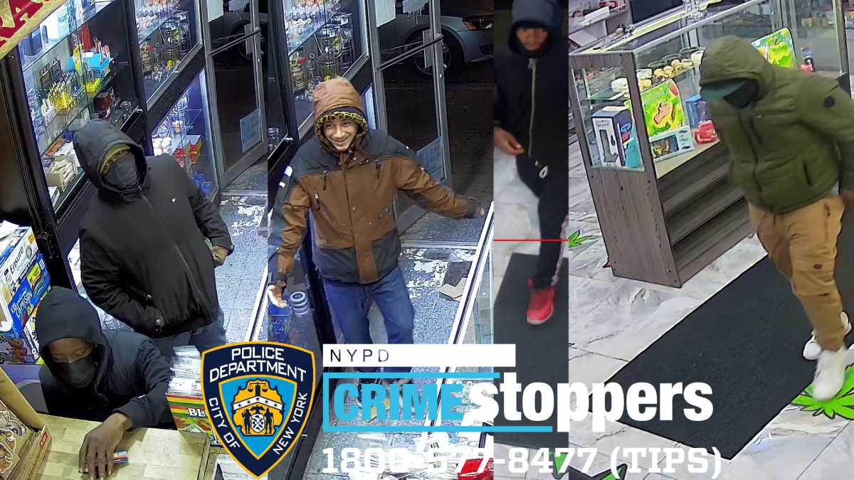On Nov. 7, the same group of robbers entered a smoke shop at 17 Bogart St. in Brooklyn, before pepper spraying a 26-year-old employee and stealing $300 dollars and marijuana products from the shelves.