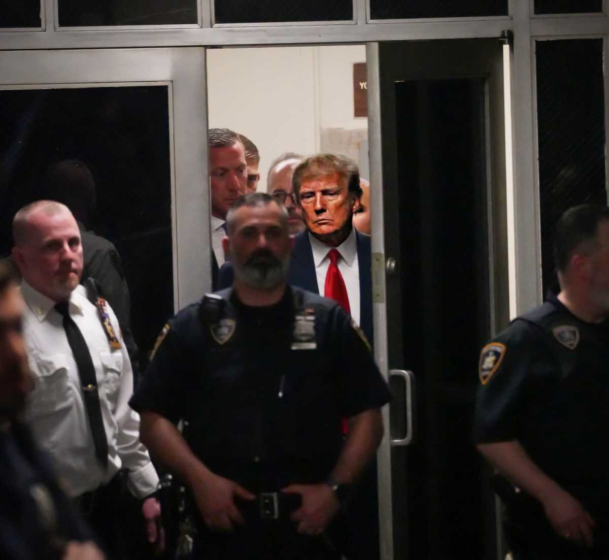Trump appeared solemn as he glided through the 15th floor hallway of the New York State Criminal Court. The embattled 45th President — swarmed by secret service agents — briefly glanced at a small throng of media cameras posted outside the courtroom, but refused to speak on the earth-shattering announcement of 34 felony counts of falsifying business records in the First Degree, a class E felony, in connection to the 2016 election.