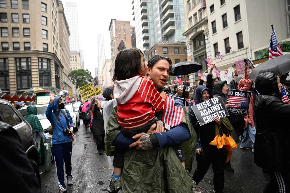 The phalanx of protesters headed up 5th Avenue to Bryant Park, where numerous speakers were set to address the huge crowd. The gathering has been largely peaceful a day after Mayor Eric Adams and NYPD officials warned participants that acts of violence would not be tolerated.