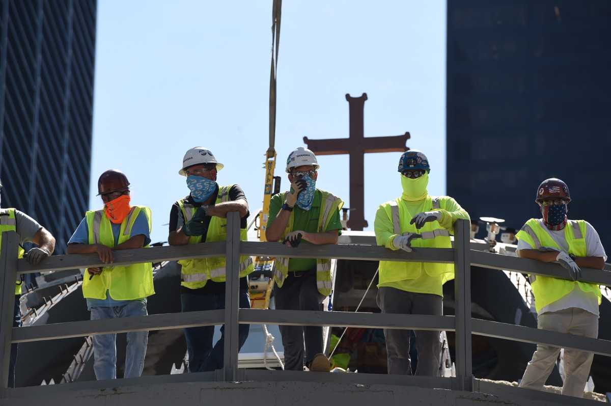 Governor Andrew Cuomo and the Port Authority of New York and New Jersey officials dedicated the shrine on Monday morning with construction workers lining the rooftop of the church and its unfinished dome.