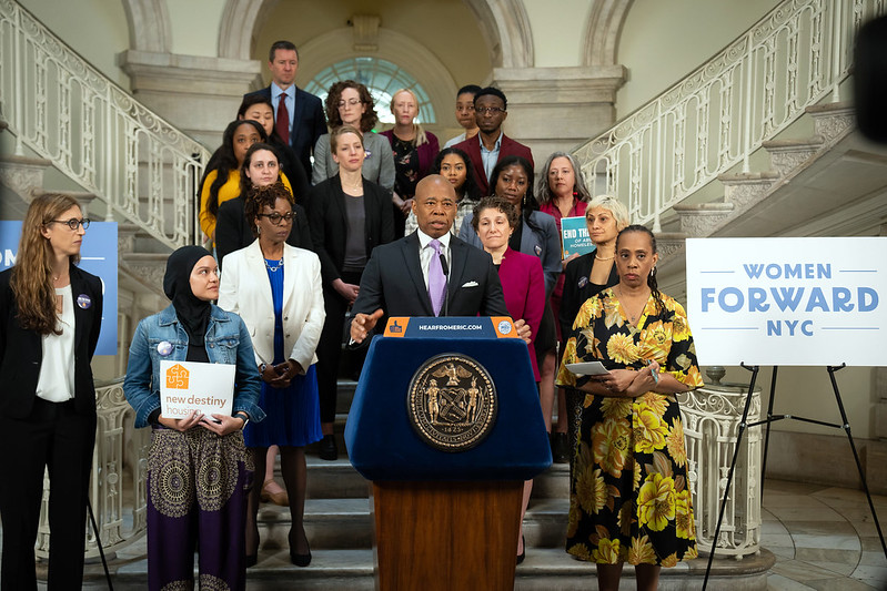 Mayor Eric Adams on Monday launched “Project Home,” a pilot program aimed at providing domestic violence survivors with children living in homeless shelters more assistance in securing permanent housing, while also instituting policy changes allowing them to access supportive and affordable housing units.