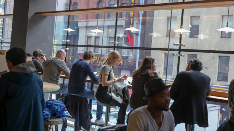 Times Square’s home for the city’s food hall craze, this cafeteria features vendors including Dough and Gabriela’s Taqueria.