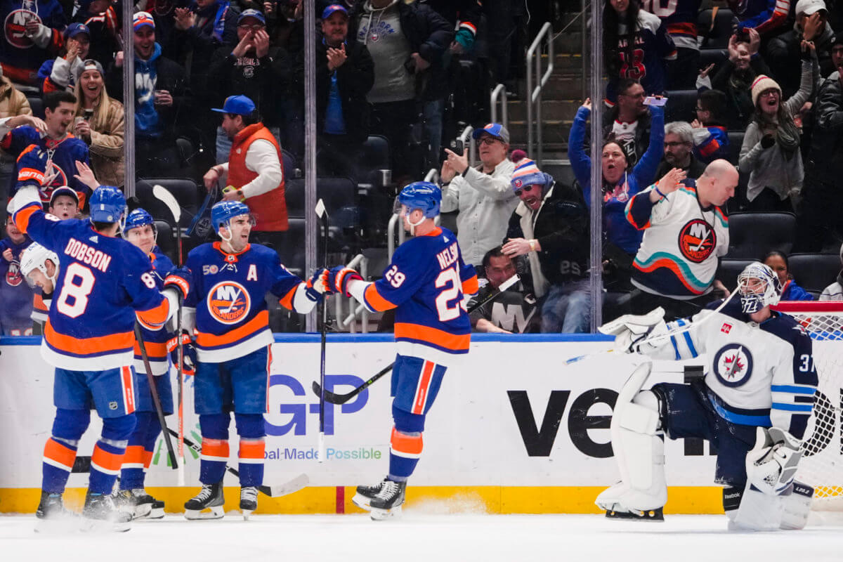 Sorokin found himself with a heavy workload from the jump. If not for him, the Islanders would have been trailing by at least two goals in the first period. Kyle Connor hit a post early before the netminder got the slightest of touches on a Blake Wheeler one-timer from point-blank range at the left post.